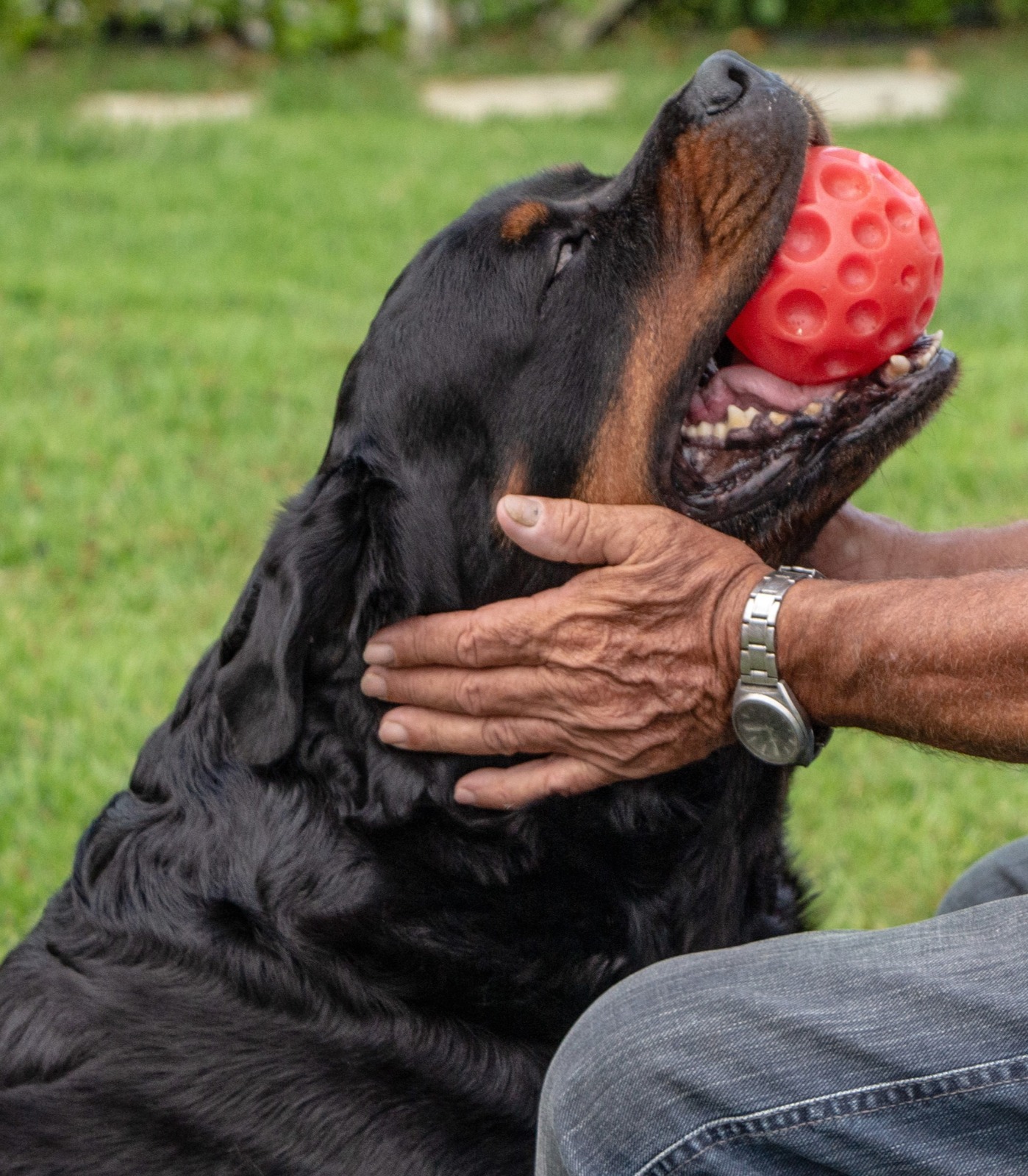Rottweilers necessitam sempre de muitas horas de atividades físicas e sociabilização (fundamental) para lapidação do senso de obediência, percepção de hierarquia e equilíbrio com outros animais e pessoas.